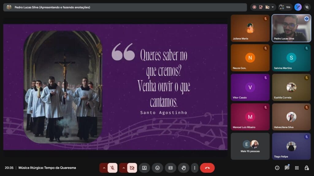 Na última terça-feira, dia 24 de fevereiro, aconteceu um encontro de formação para os músicos da Arquidiocese de Diamantina. O encontro faz parte de um ciclo de formação litúrgica e ocorreu de forma online, contando com a presença de mais de cem participantes.
